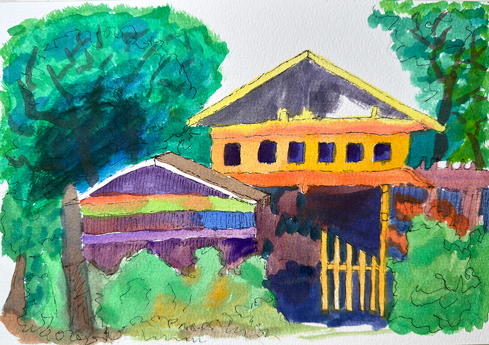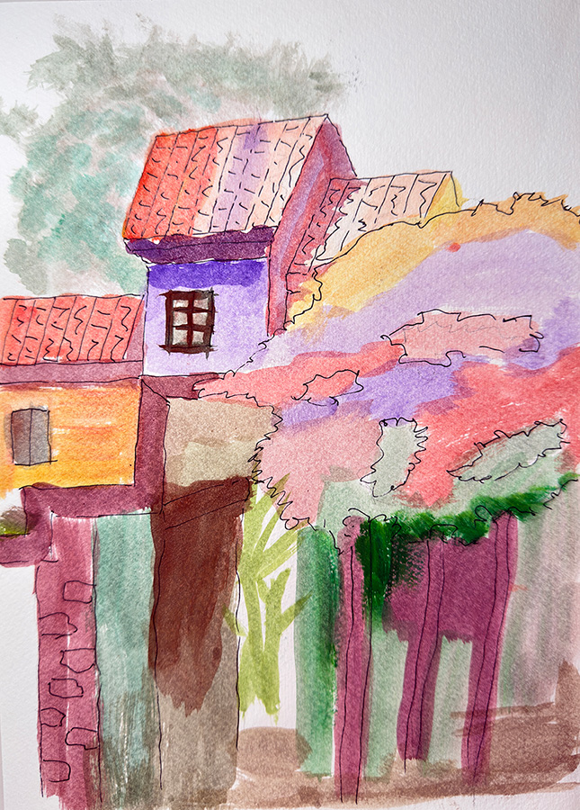 課程中使用了水彩、色鉛筆與素描。雖然我只在國小時畫過一點,長大後幾乎沒碰過畫筆,算是零基礎,這次練習讓我慢慢體驗到色彩的樂趣。
