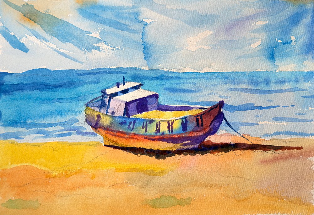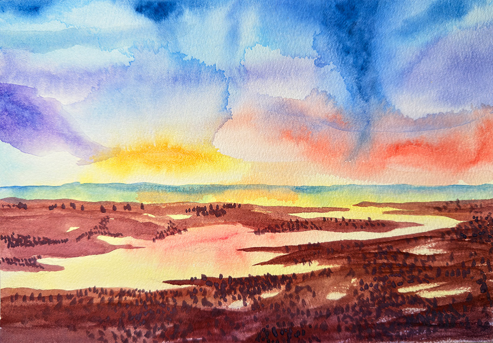 第四幅水彩 要往美的地方看 那水面 有光感呢